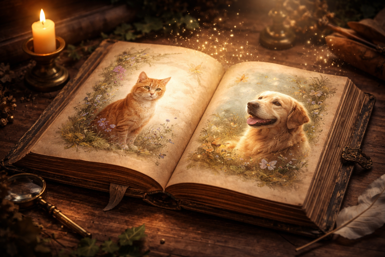 Recibirás un relato literario personalizado acompañado de ilustraciones creadas a partir de las imágenes de tu animal.